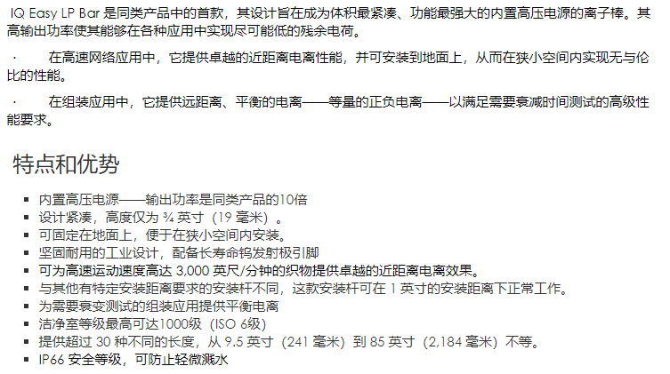 ION 静电消除棒IQ Easy LP系列